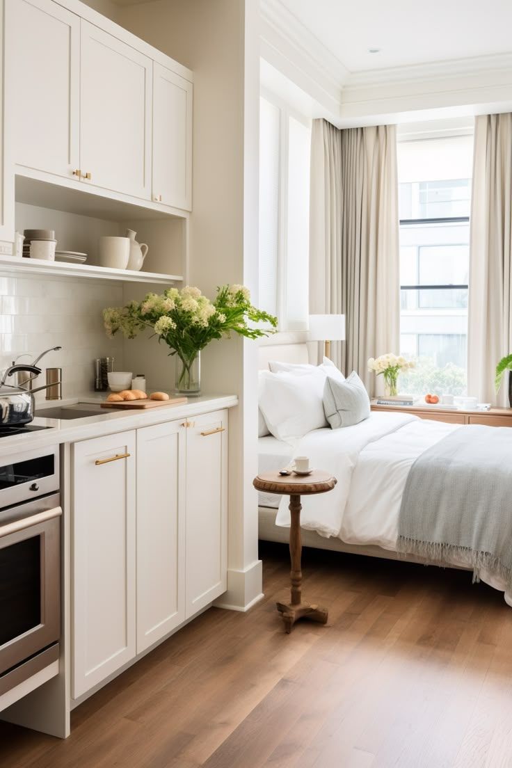 Mimarica'dan öneri: Eğer tavan yüksekliği uygunsa, farklı yükseklik seviyeleri oluşturmak ( örneğin hafif bir platformla yatak alanını ayırmak ) mekanı daha deri toplu ve işlevsel hale getirebilir.